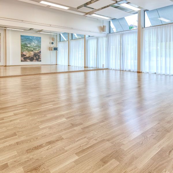 Grosszügiger, heller und harmonisch gestalteter Raum. Grösse: 85 m2 Boden: Buchenparkett Verwendung: Körperarbeit, Meditation, Kurse, Vorträge