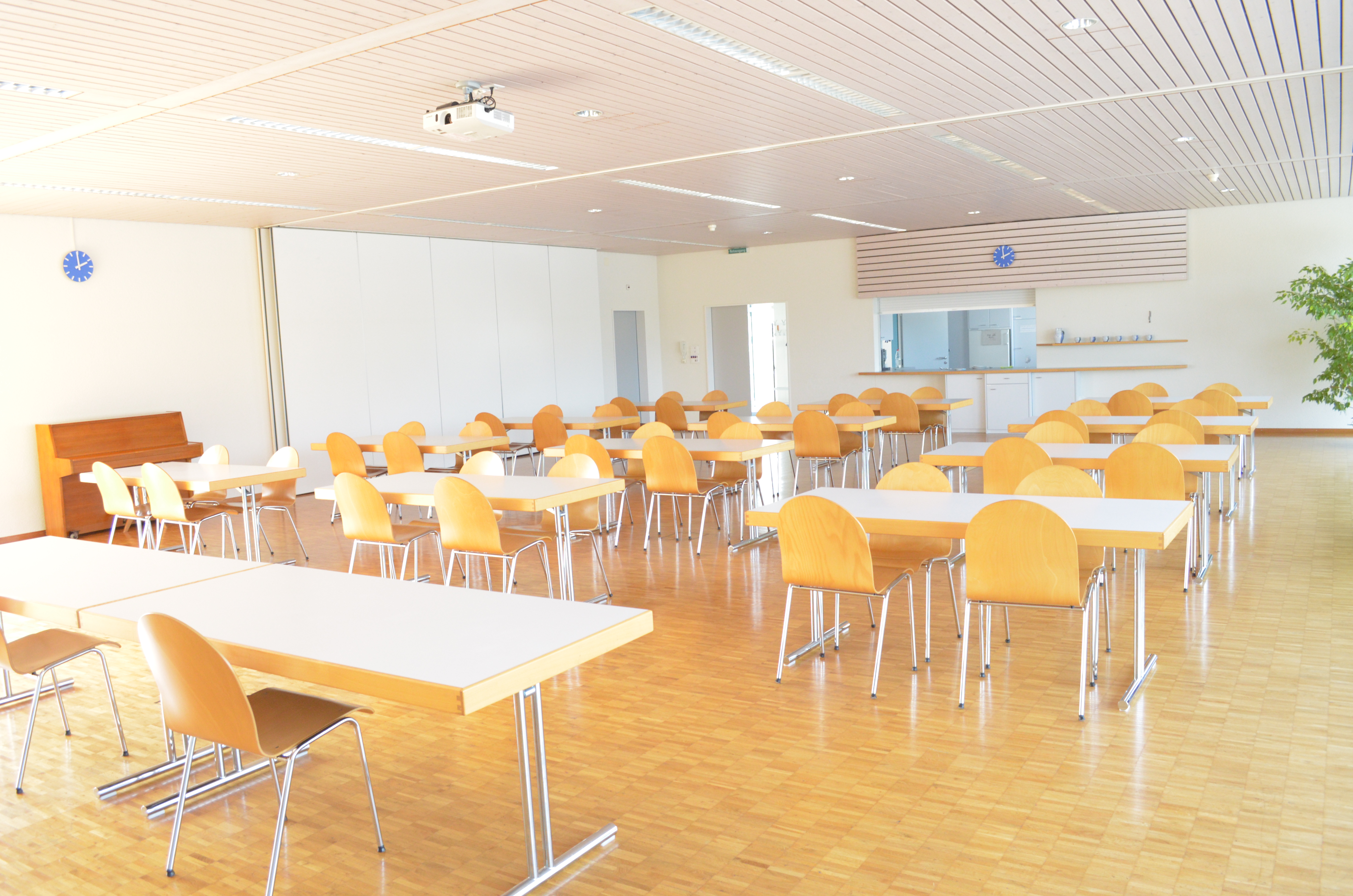 Mit einer Fläche von 200 m2 bietet Ihnen der Raum Platz für 80 Gäste für Anlässe wie Geburtstags- oder Hochzeitsfeiern, Seminare, Generalversammlungen, Jassturniere oder sonstige Festlichkeiten.