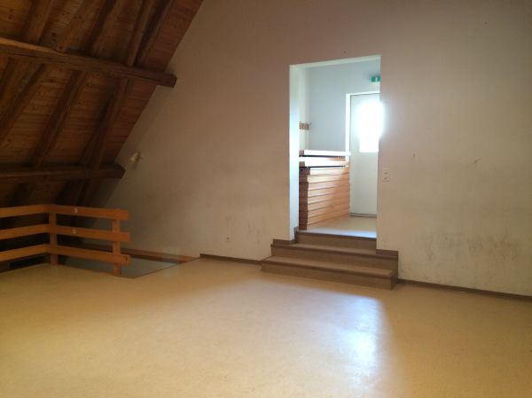 Die Schüre ist in 2 Räume geteilt (60 P. oder 25-30 P.), kann bei Bedarf geöffnet werden. EG und Heuboden. Parkplätze sind beim Schulhaus vorhanden, 2min. Alle Räume habe Zentralheizung.
