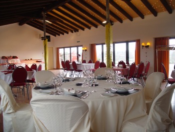 Grosser, hoher, heller Raum für max. 150 Personen zum Essen.