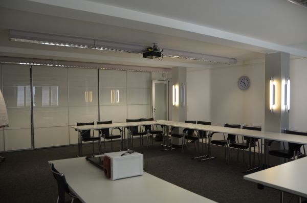 ruhiger Seminarraum 16.5 qm Blocktisch für 1-10 Sitzplätze auf Wunsch kann umgestellt werden