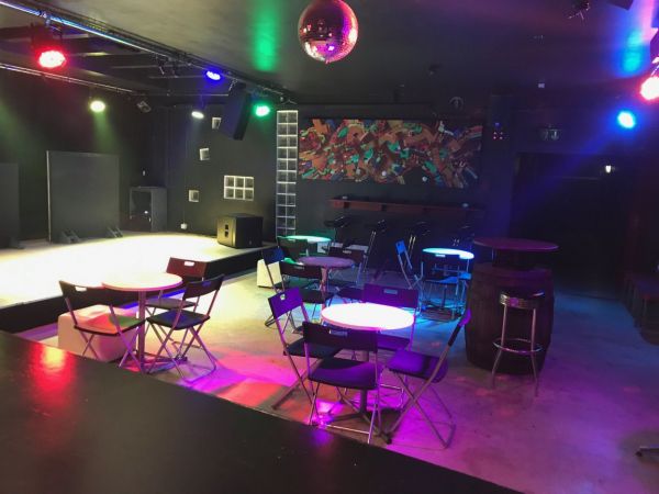 110qm komplett eingerichteter Raum und 24qm Fumoir mit sehr gemütlicher und doch eleganter moderner Innenarchitektur und Bühne. Komplette Bar und hervorragende Muskikanlage vorhanden.