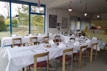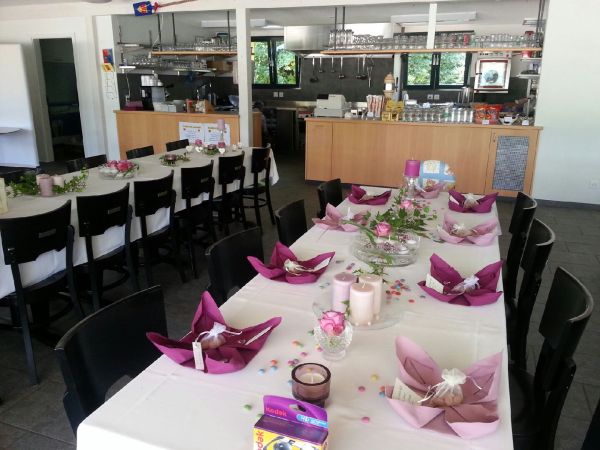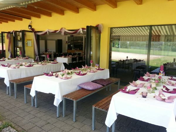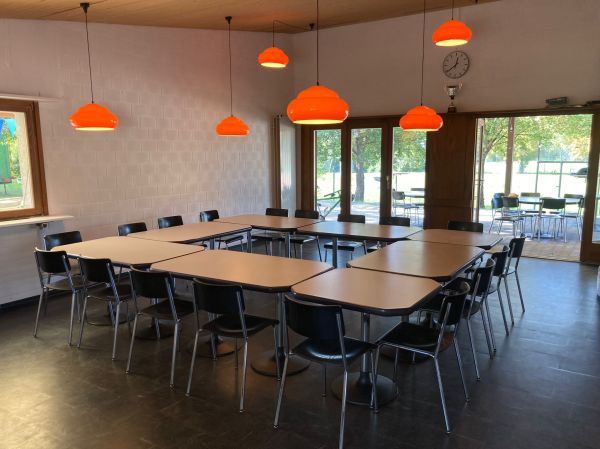 - Modernes Clubhaus mit Terrasse (ca. 80 Innen-, 40 Aussen-Sitzplätzen) - Kann mit oder ohne Catering gebucht werden