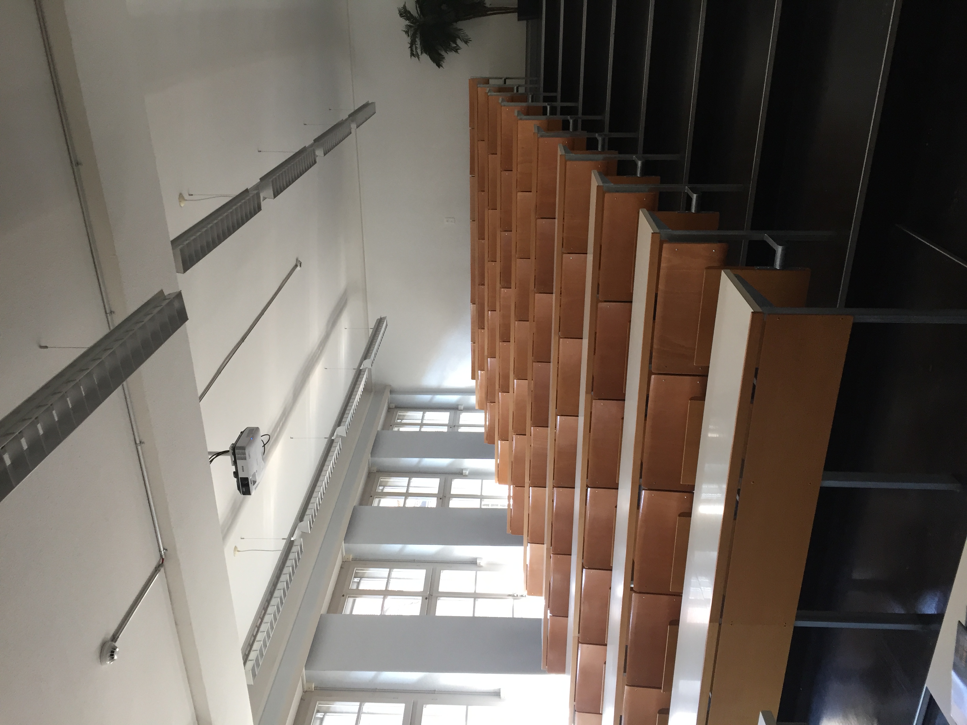 Unsere Aula bietet Platz für 63 Personen und ist technisch auf dem höchsten Stand. Die Bestuhlung ist fix verankert wie in einem Vorlesungssaal.