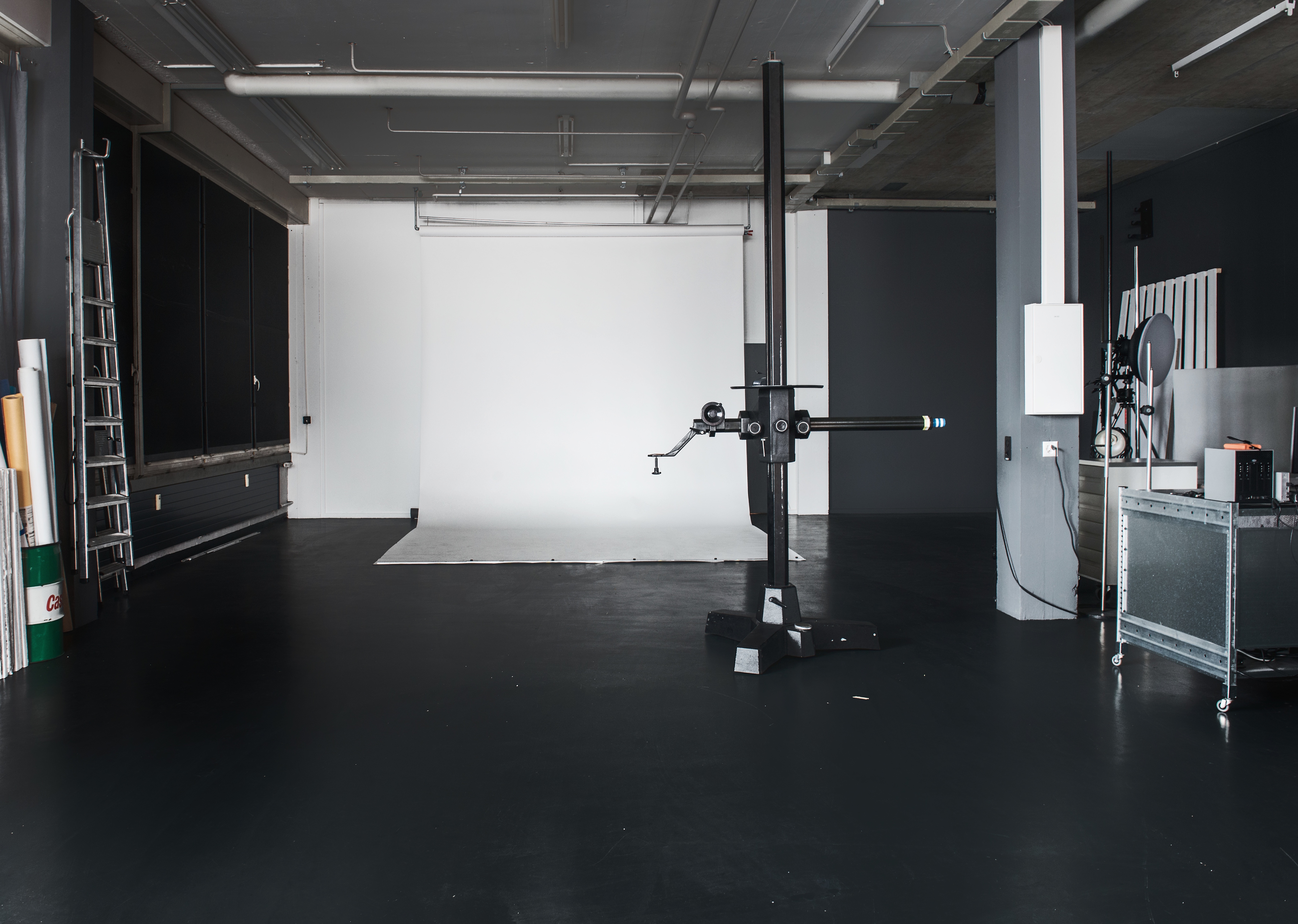 Das Studio befindet sich in einem Industrie Gebäude im 2. Stock. Es verfügt über eine Rampe und einen grossen Warenlift sowie Wareneingang.Grössere Gegenstände wie Velos, Motorräder, Möbel etc. können ins Studio gebracht werden. Das Studio verfügt über eine grosse Fensterfront für Frischluft sowie Tageslicht und es kann komplet abgedunkelt werden.