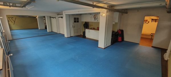 Trainingsraum ca. 60 m2 Geeignet für kleine bis mittlere Trainingsgruppen. Ausgestattet mit Matten, Spiegel, Kampfsportmaterial, Boxsäcke, Achtung: Keine Duschen! Stundenweise und ganztags mietbar. Preis auf Anfrage