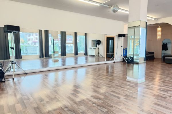 Tanzstudio für Bewegungsstunden: *TRX/ Aerail Silk Vorrichtung vorhanden " 15 Gymnastikmatten * 5 Ballett-Stangen * 6 Turnmatten * 15 TheraBänder * Musikanlage * 11 Meter Spiegelfront * Garderobe * Dusche " 2 Toilletten * 7 Aerial Silk Tücher ...
