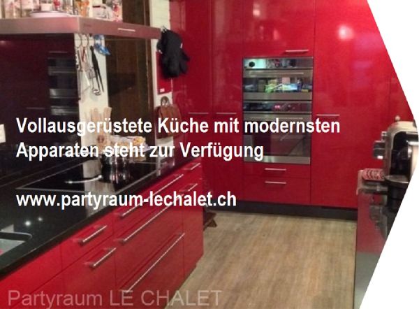 Miete mit Raum Küche/Geschirr/Abwasch/Endreinigung 400.- Der Raum ist im rustikal-Styl dekoriert. Es hat eine grosse Küche die benutzt werden kann. Tische und Stühle sind vorhanden.