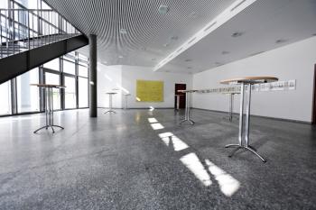 Neben dem Saal gibt es auch noch einen kleineren Raum (Foyer/Bar) für 150 Personen.
