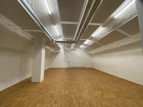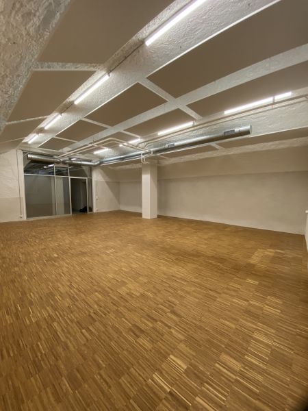 Zu vermieten per sofort oder nach Vereinbarung: Gewölbekeller, ebenerdig, in den Hang gebaut - Grundriss/Nutzungsfläche 75m2 - im 2021 renoviert und ausgebaut - belüftet, schallgedämpft, Industrieparkett (Eiche), Licht dimmbar - an zentraler Lage in ...