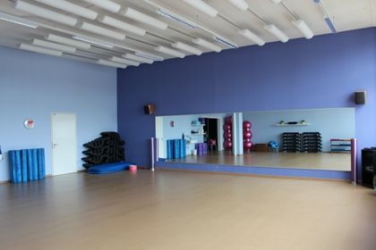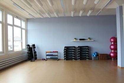 Wunderschöner heller 100 qm grosser Trainingsraum mit grosser Spiegelwand und separatem Umkleideraum, sowie getrennte Damen/Herren WCs auf der Etage. Eignet sich hervorragend für Kurse im Bereich Yoga, Pilates, Qi Gong, Tai Chi, Tanz, Aerobic, oder ander ...