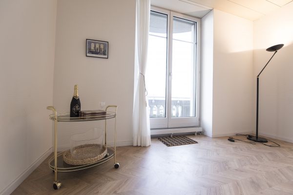 Heller Raum mit Sicht auf das Niederdorf