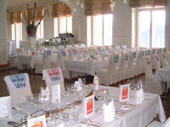 Die Räume, eingerrichtet im Jugendstil (3 Speisesäle, Bars, Lounge mit Cheminée und Seminarraum), sind individuell nutzbar. Die dazugehörige Grossküche ermöglicht div. Speisevariationen von einfachen Snacks bis zu Gala-Menues. Dank der zahlreichen Hotelzi ...