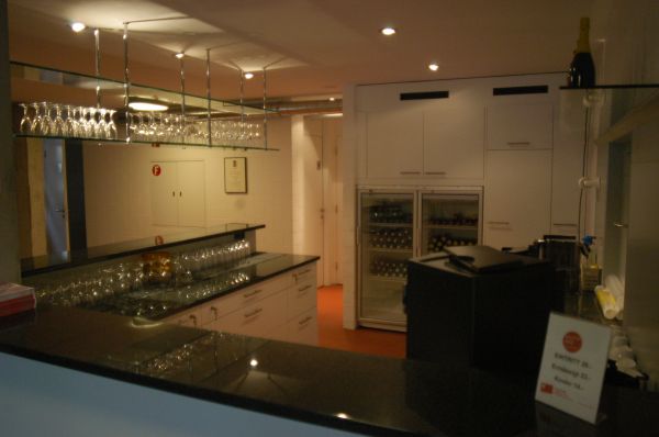 Der kleine Parterreraum überzeugt mit denselben Qualitäten wie sein grösseres Pendant. Er dient jedoch bei Bedarf auch als Künstlergarderobe mit eigenem Dusche-/WC-Trakt sowie mit direktem Zugang zur Bühne im ersten Stock. Analog dem grossen Parterreraum ...