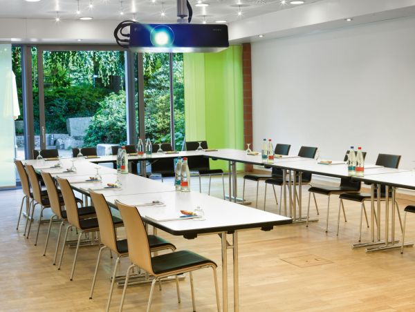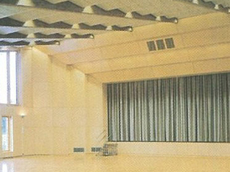 Saal mit ausgezeichneter Akustik für vielseitige Nutzung. Dreifachsporthalle mit Zuschauergalerie, sowie diverse Nebenräume.