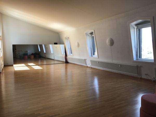 An bester Lage, über den Dächern der Stadt direkt beim Bahnhof Thun, vermieten wir unsere beiden Studios mit gelenkschonendem, geöltem Holzboden. Ein kleiner Garderobentrakt mit WC, Dusche und Teeküche verbindet die beiden Bewegungsräume.