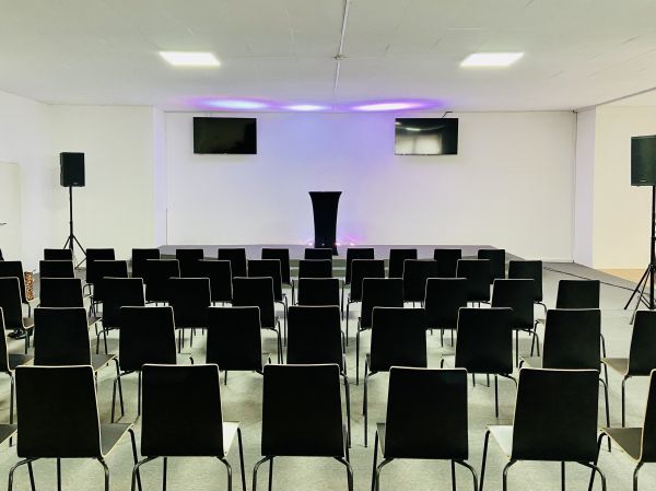 Wir vermieten einen modernen Seminarraum für Ihre Aktivitäten für ca. 100 Personen. Der Raum ist vollständig mit Ton (Mikrofone und Lautsprecher) und Bild (HDMI-Kabel und Fernseher) ausgestattet. Er verfügt über Stühle, Tische, eine Bühne und ein techni ...