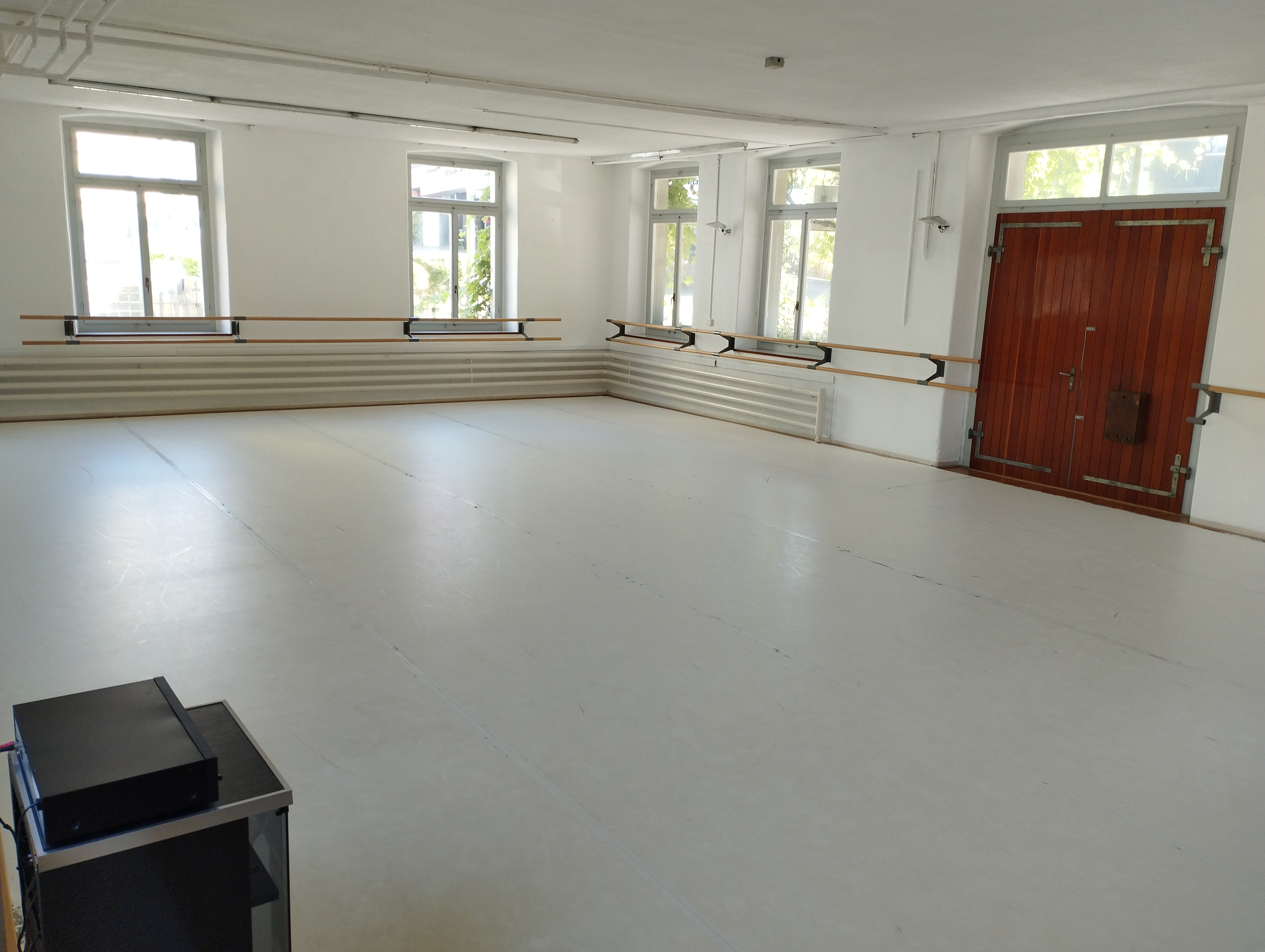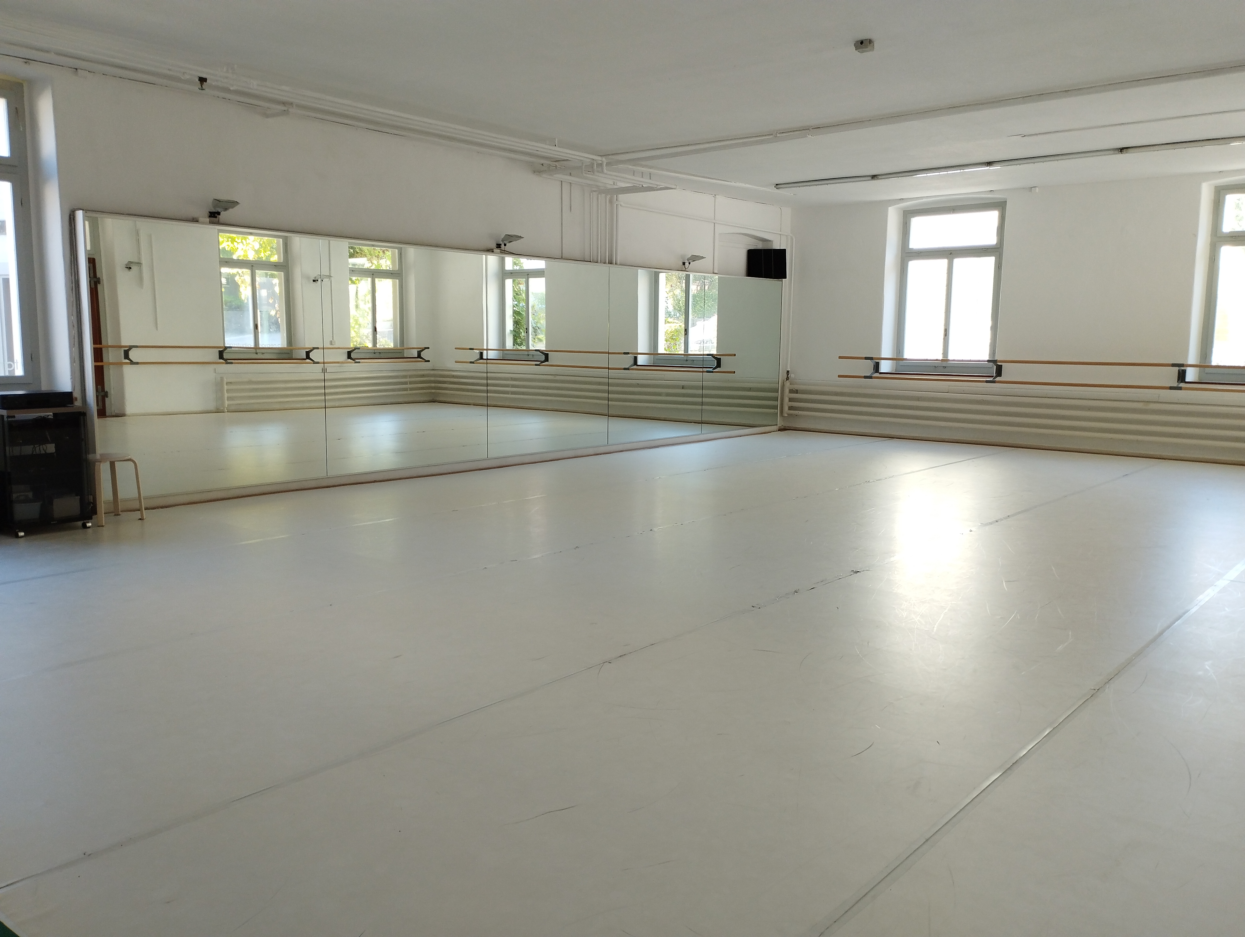 Musik machen oder abspielen ist bis 21 Uhr erlaubt. Eine Garderobe, WC und Stereoanlage ist vorhanden. Eine verspiegelte Wand mit Ballettstange ist ebenfalls vorhanden.
